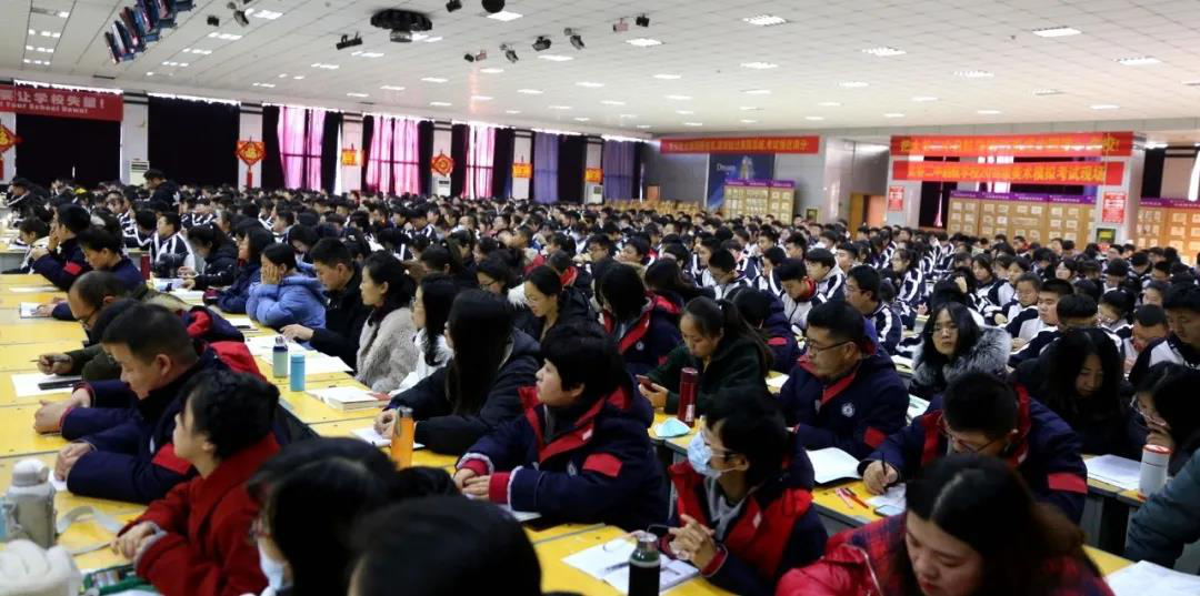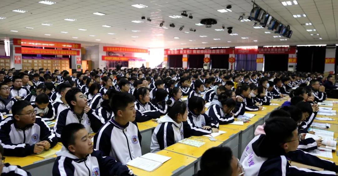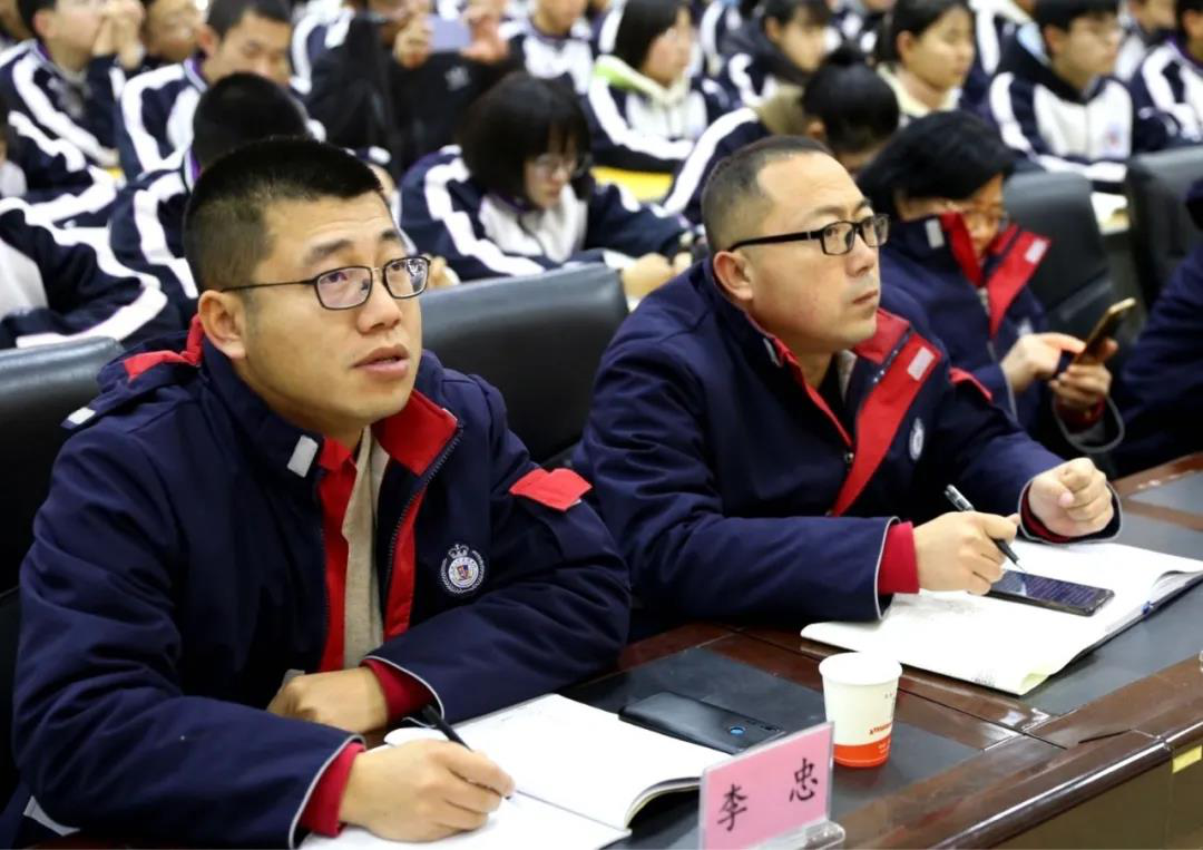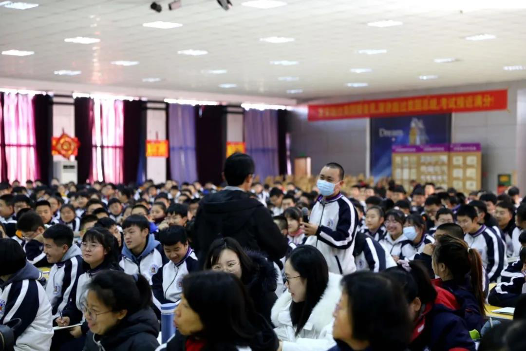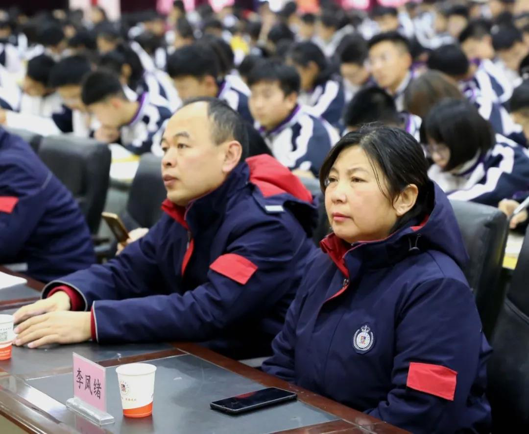 董建义校长、张谦兰督学、李凤绪校长、张志彪副校长、李忠副校长出席,高一年级全体师生近千人参加。