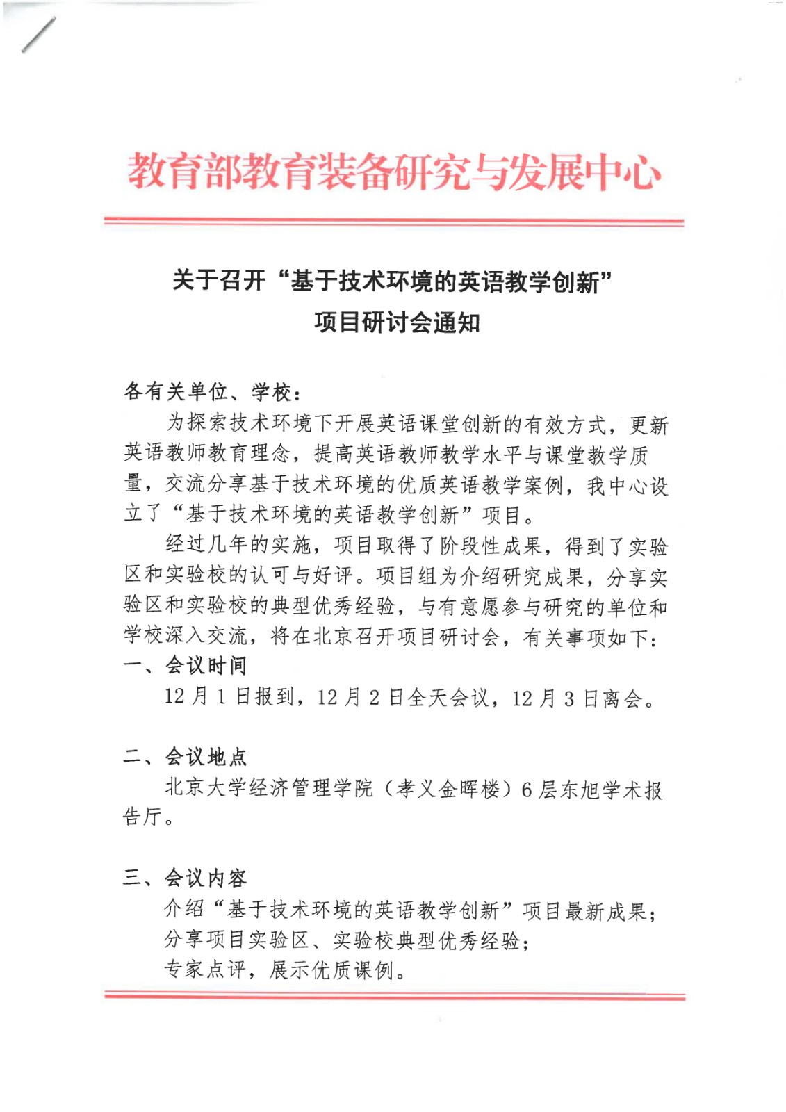 关于12月2日在北京大学召开“基于技术环境的英语教学创新”项目研讨会的通知.pdf
