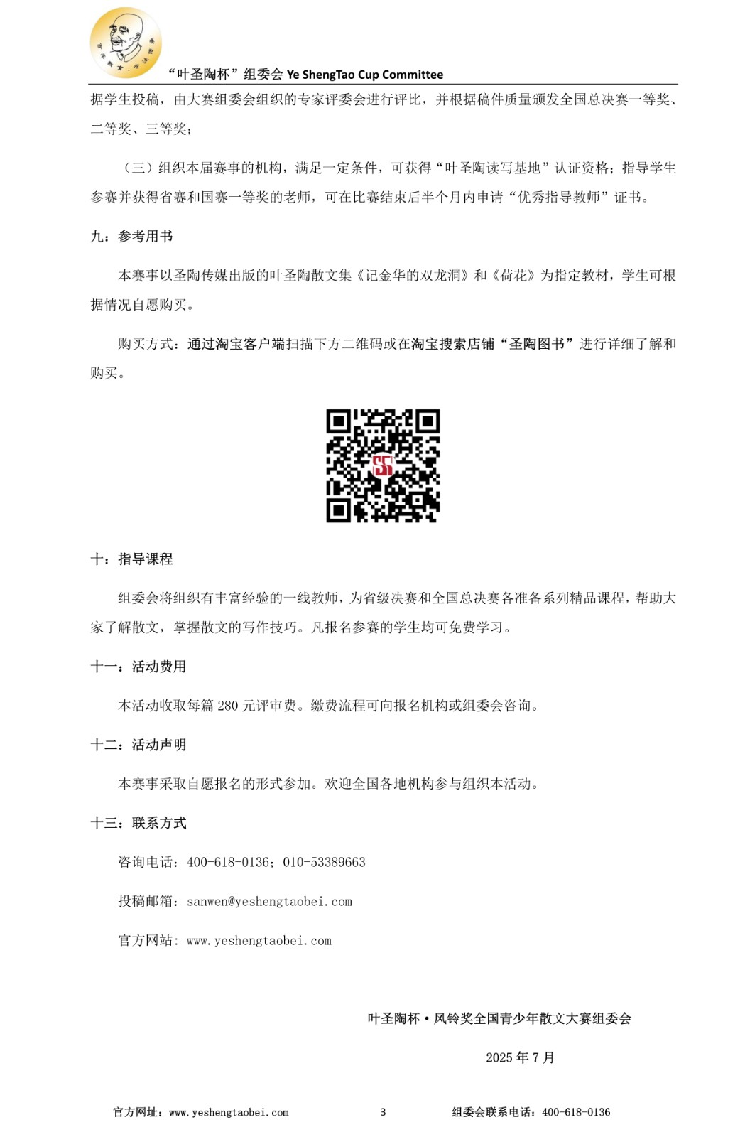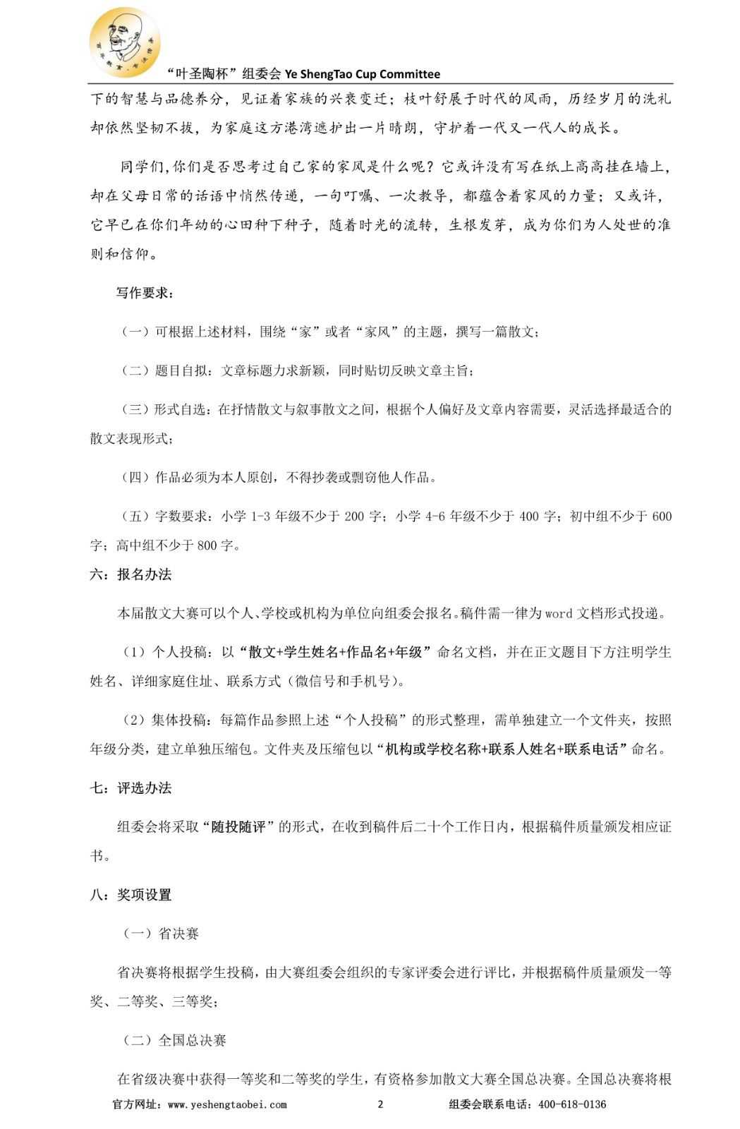 第十四届“叶圣陶杯·风铃奖”全国青少年散文大赛省级决赛征稿启事/征稿启事/叶圣陶杯系列赛事官网